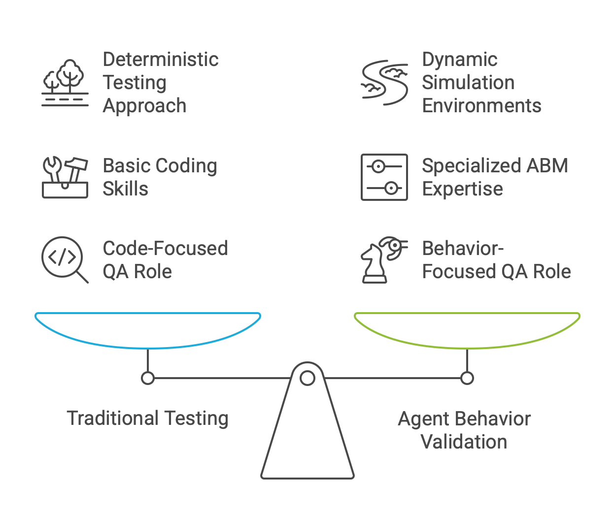 Second-Order Impact: This shift necessitates new infrastructure, tooling, and skillsets. Teams will require expertise in agent-based modeling (ABM), simulation platforms, and techniques for creating realistic digital twins. The role of a QA engineer is likely to evolve into an "Agent Behavior Validation Specialist," whose job is to design challenging scenarios, analyze emergent behaviors, and certify that an agent is safe for deployment in its target environment.