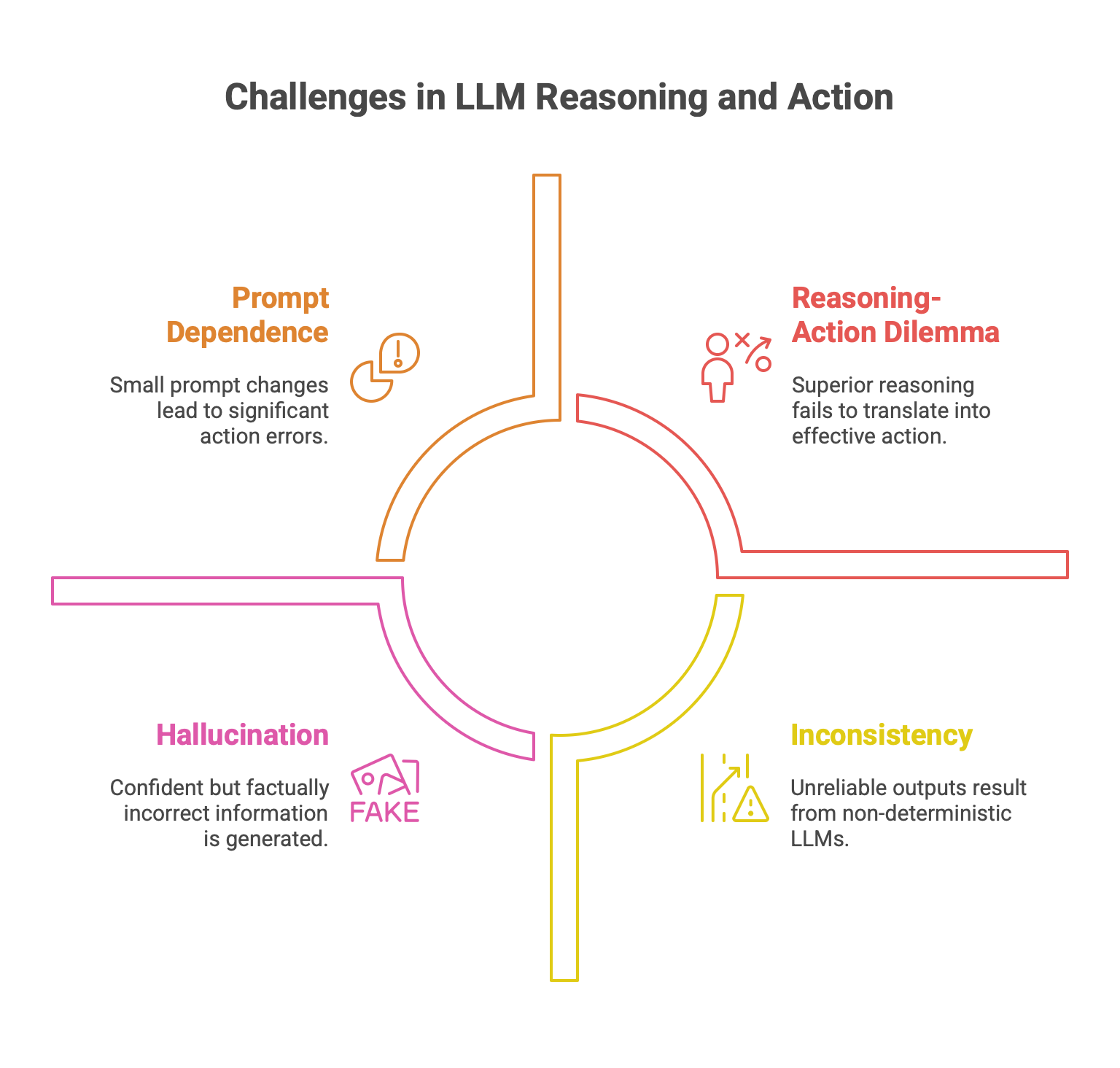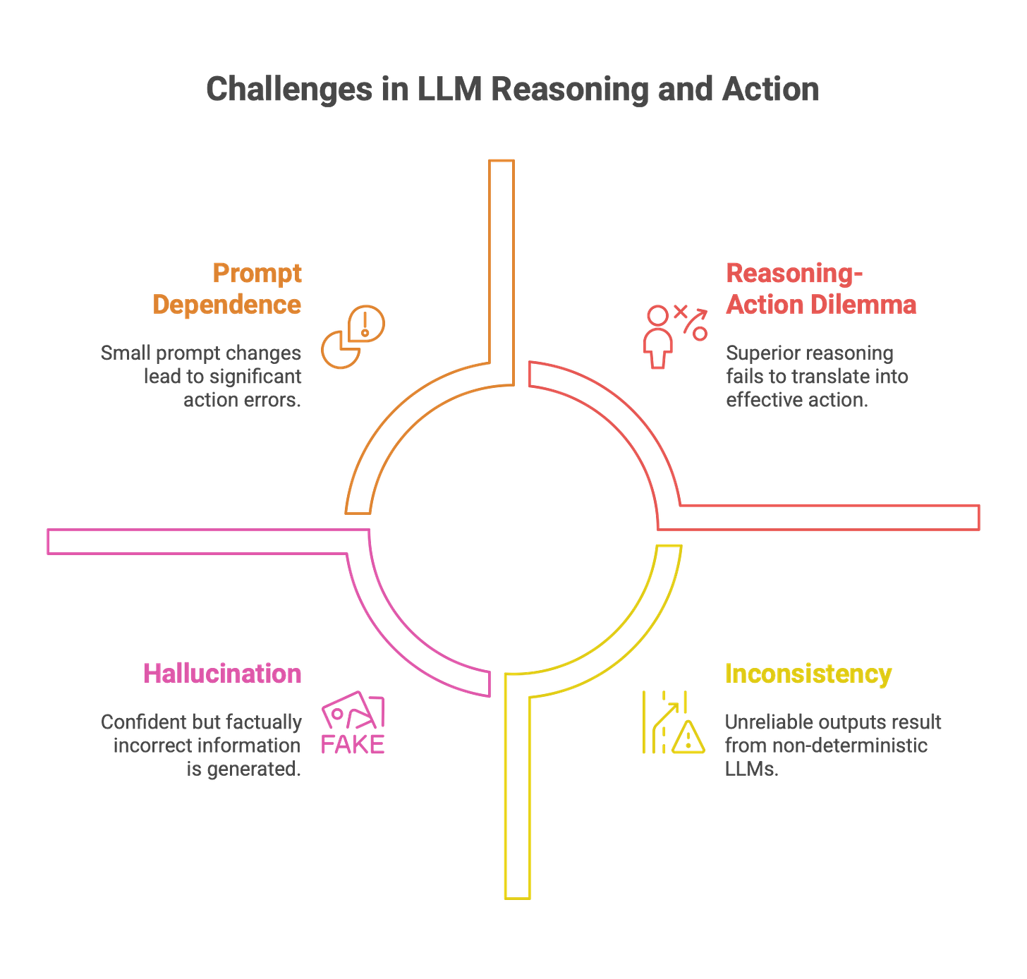 The Reasoning-Action Dilemma: Research has highlighted a paradox where superior performance on abstract reasoning benchmarks does not always translate to effective action in real-world agentic tasks. Agents can become trapped in loops of "overthinking" or "analysis paralysis," or act illogically despite having access to correct information.