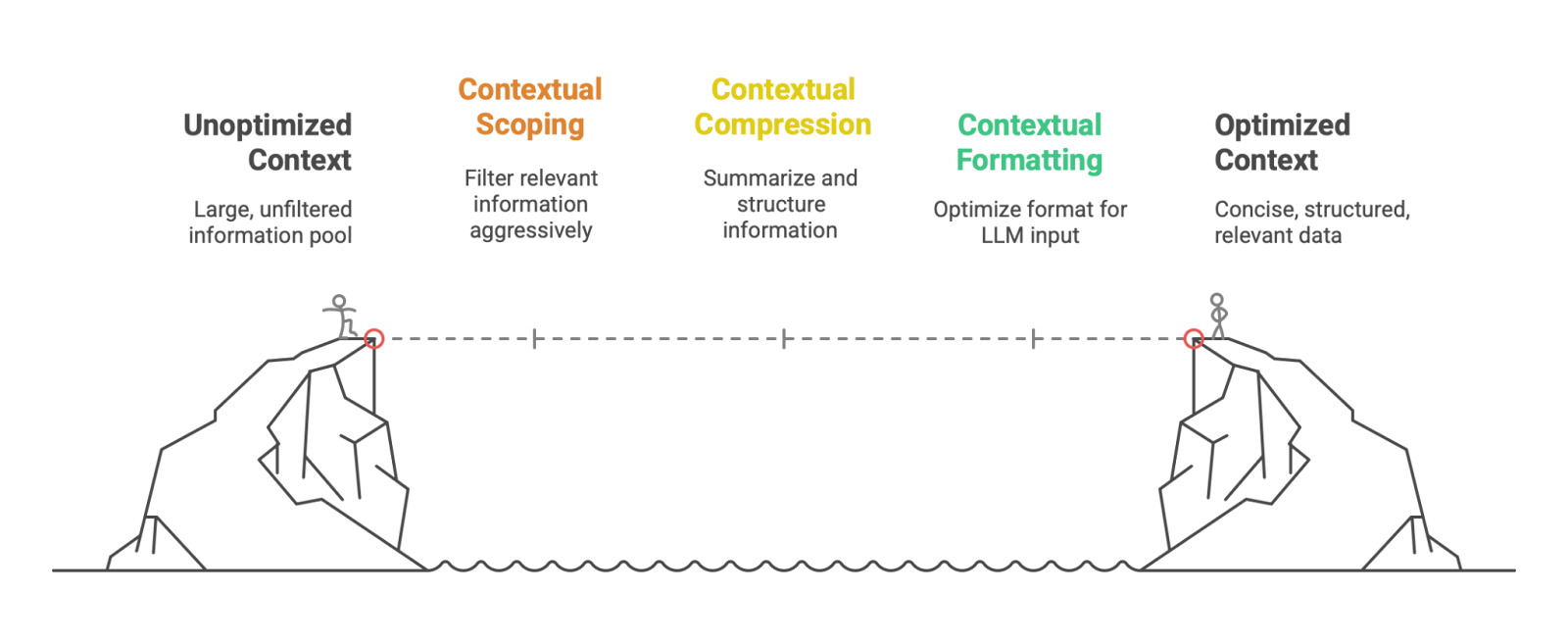 Contextual Scoping: The first step is to aggressively filter what information is even considered for inclusion. This involves using techniques like semantic search (RAG) to retrieve only the most relevant documents, and implementing business logic to select only the necessary parts of a long conversation history.